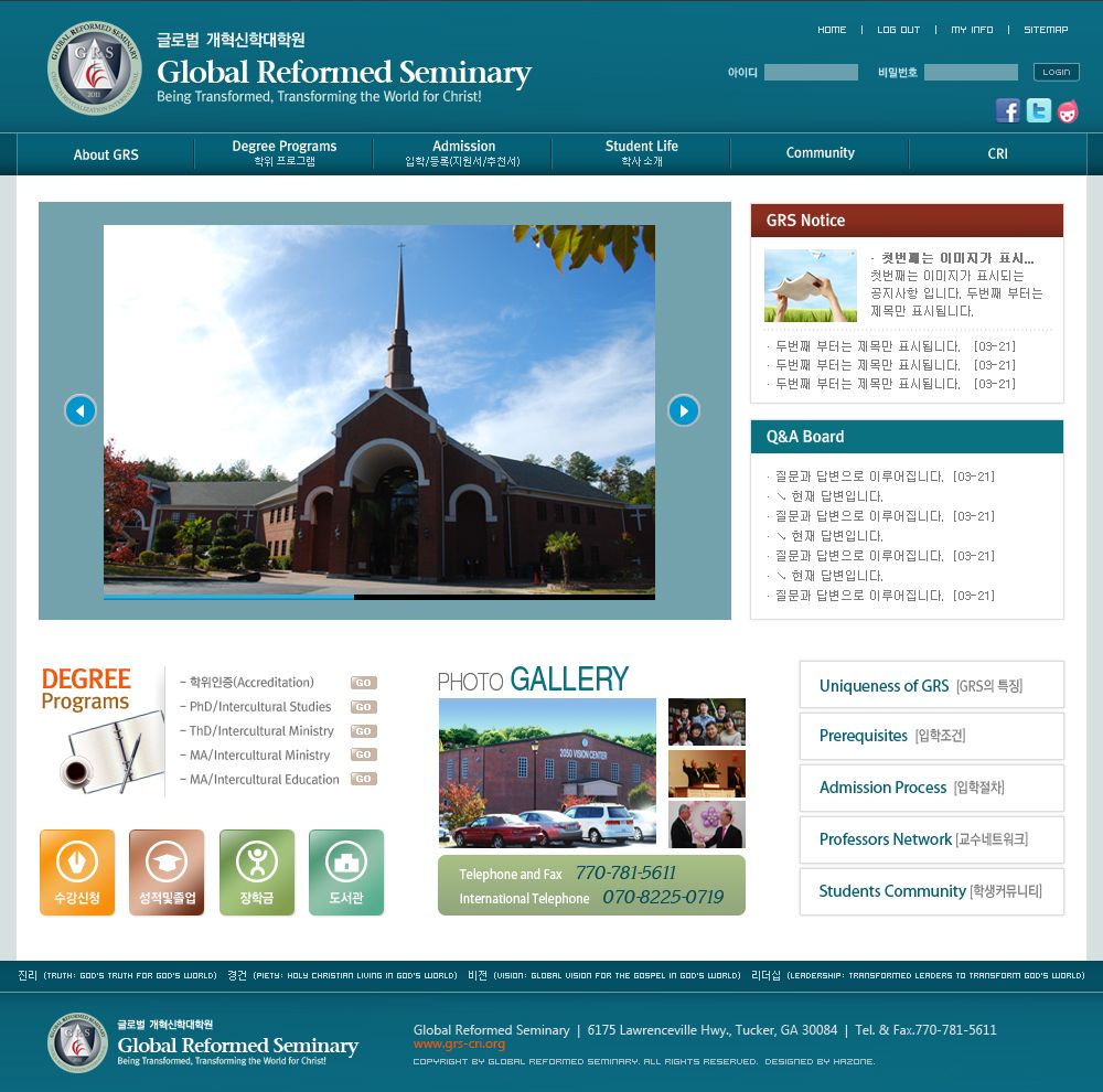 글로벌개혁신학교 홈페이지 구축건