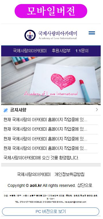 페이지 정보 이전글 다음글 검색 목록 본문 교육,학원 | 국제사랑의아카데미(PC&Mobile) 국제사랑의아카데미(모바일버전동시구축) 관련링크 사이트 바로 가기 이전글 다음글 검색 목록