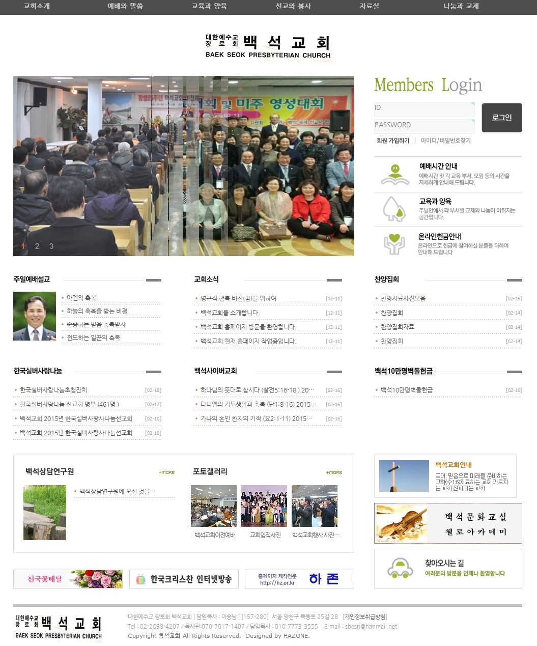 백석교회 홈페이지
