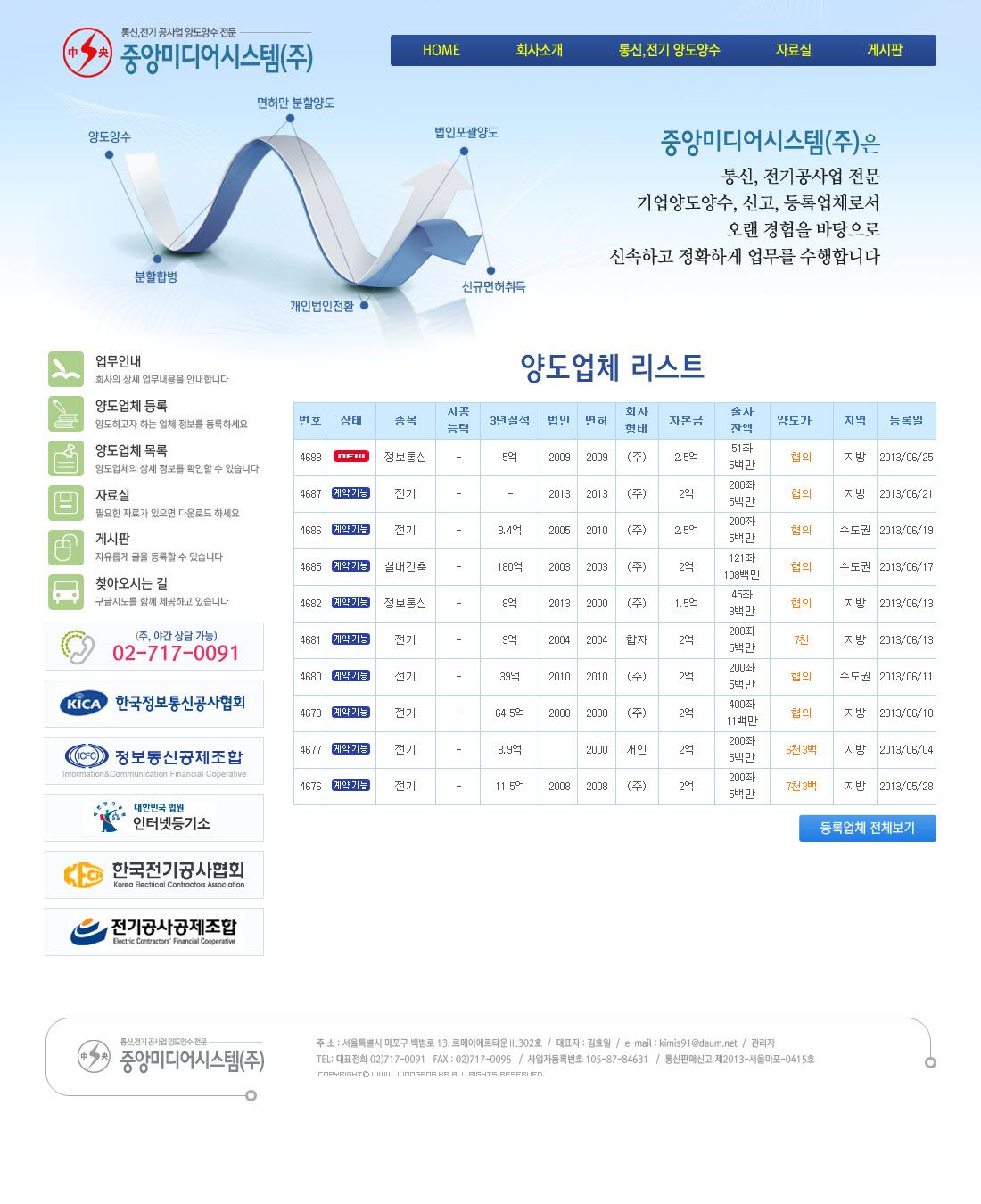 중앙미디어시스템 홈페이지 구축 및 양도업체 프로그래밍