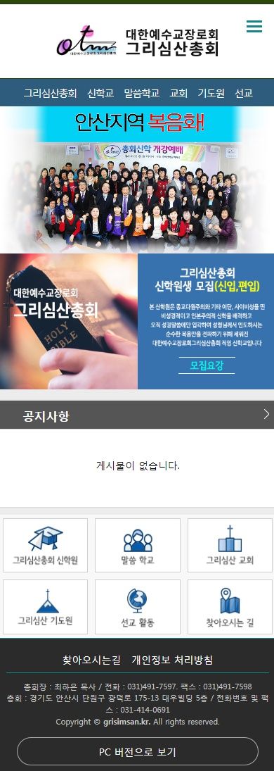 페이지 정보 이전글 다음글 검색 목록 본문 선교단체,기도원 | 그리심산총회 (PC&Mobile) 대한예수교장로회 그리심산총회 홈페이지 제작 관련링크 사이트 바로 가기 이전글 다음글 검색 목록